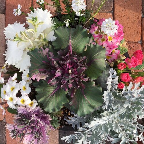 お正月用に作った葉牡丹の寄せ植え 伸びたハボタンをどうしたらいいのか。。。 何だか狭そう 調べてみたら踊りハボタンなるものが^^ ハボタンだけで植えることにしました♪ 植え替えしたいと思ったけどポインセチアの 植え替えで使い切ってしまい鉢底石がない…